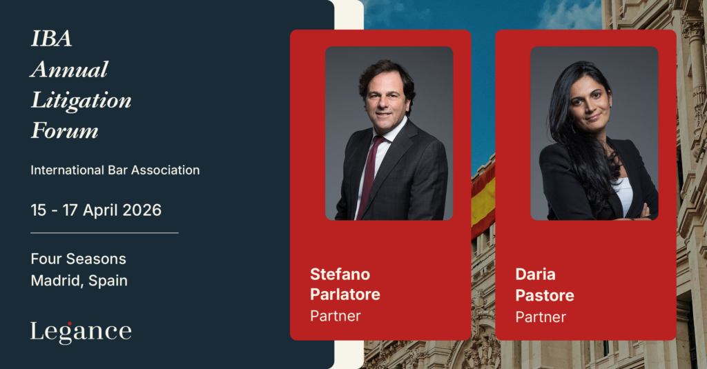 Stefano Parlatore and Daria Pastore, Partners at Legance, will attend the IBA Annual Litigation, organised by International Bar Association and presented by the IBA Litigation Committee. The conference will take place in Madrid from 15th to 17th April 2026.